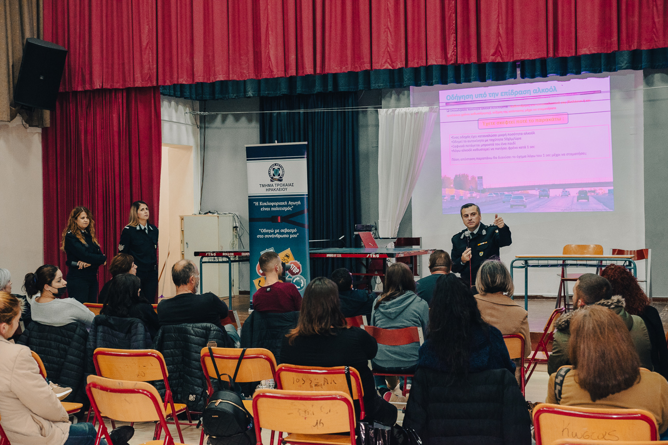 Μέσα από διάφορα σχετικά βίντεο που προβλήθηκαν ως σενάρια προς συζήτηση, χαρακτηριστικότατες ήταν οι εκφράσεις στα πρόσωπα των συμμετεχόντων, οι οποίο παρακολούθησαν με μεγάλο ενδιαφέρον τη σημαντικότατη αυτή εσπερίδα από την Τροχαία Ηρακλείου.