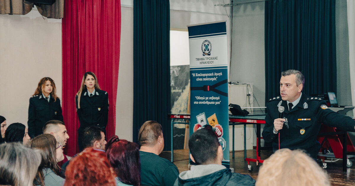 Συνεχίζει την ενημέρωση το Τμήμα Τροχαίας Ηρακλείου οργώνοντας στην κυριολεξία τα σχολεία όλων των βαθμίδων, νηπιαγωγεία – δημοτικά – γυμνάσια και λύκεια, με σκοπό τη σωστή διαπαιδαγώγηση των νέων για τη βελτίωση του επιπέδου οδικής ασφάλειας στο τόπο μας.