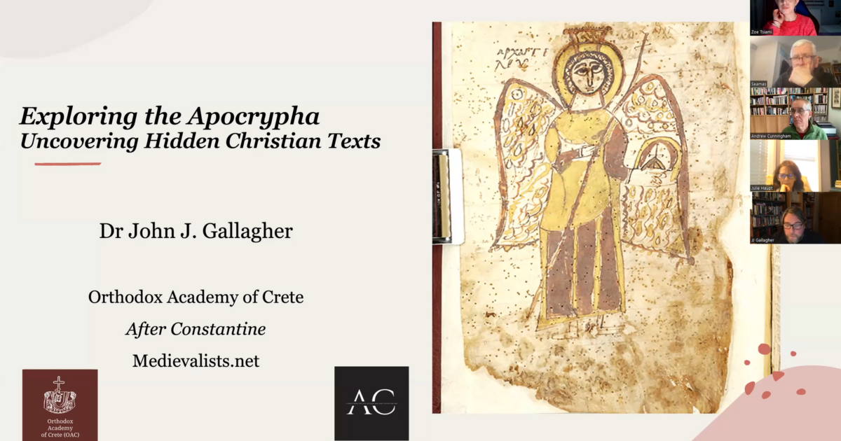 Με μεγάλη επιτυχία ολοκληρώθηκε το διεθνές διαδικτυακό Εργαστήρι, με θέμα την έρευνα πάνω στα απόκρυφα βιβλία και την ανακάλυψη νέων χριστιανικών κειμένων (Exploring the Apocrypha: Discovering Hidden Christian Texts), το οποίο πραγματοποιήθηκε την Κυριακή, 18 Φεβρουαρίου τ.έ. Σκοπός του Εργαστηρίου ήταν η γνωριμία με τα απόκρυφα χριστιανικά κείμενα, η κοινωνική και θρησκευτική ερμηνεία τους, η παρουσίαση των λόγων που αποκλείστηκαν από τη Βίβλο και η διαδραστική μελέτη τους.