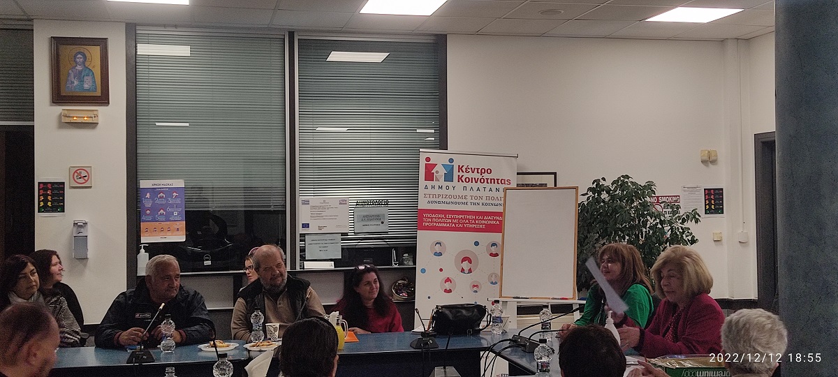 Με επιτυχία πραγματοποιήθηκε, τη Δευτέρα 12 Δεκεμβρίου, η ομιλία για τα δικαιώματα των ΑμεΑ, που διοργάνωσε το Κέντρο Κοινότητας Δήμου Πλατανιά σε συνεργασία με το Σωματείο ΑμεΑ Νομού Χανίων.