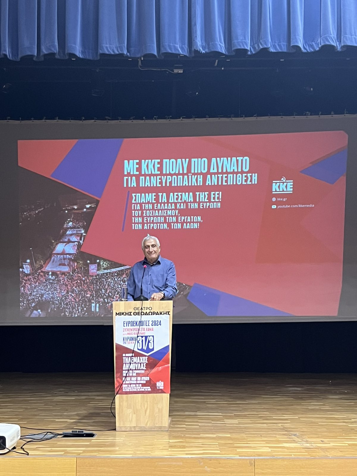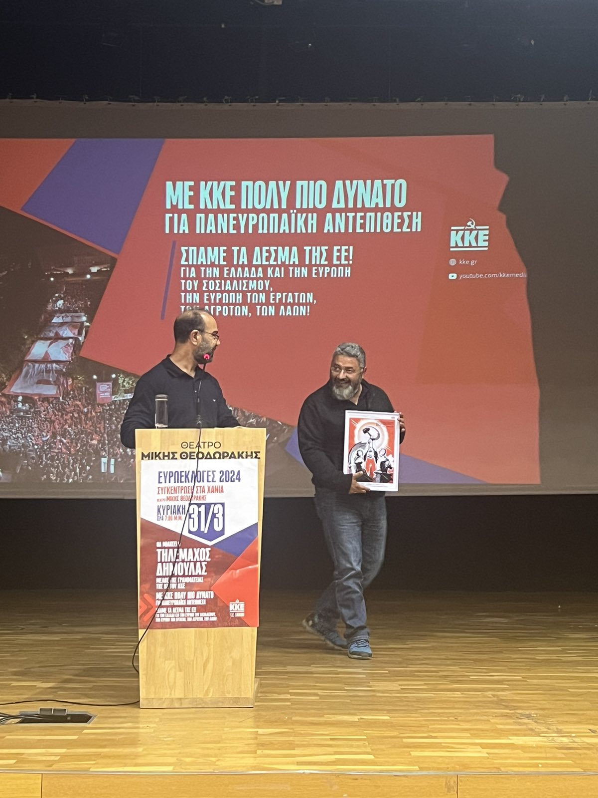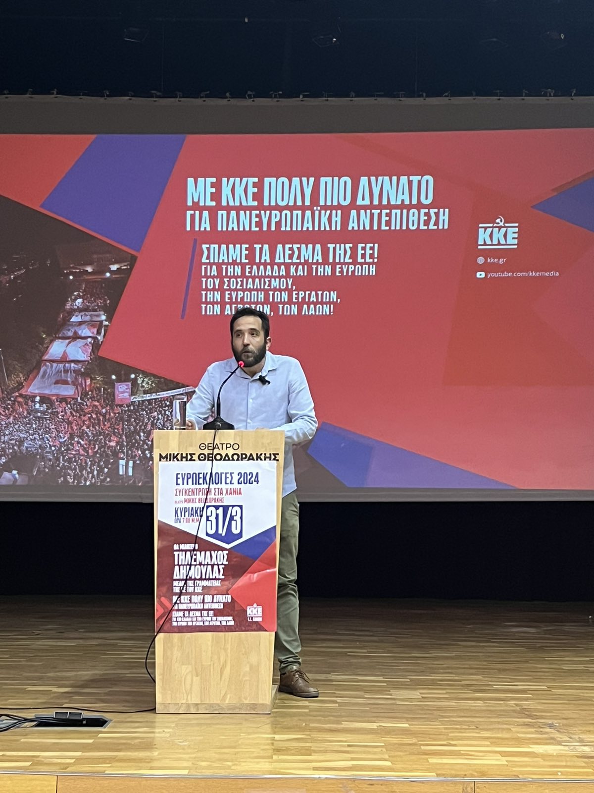Με μεγάλη επιτυχία πραγματοποιήθηκε η πολιτική συγκέντρωση – εκδήλωση της ΤΕ Χανίων, στο θέατρο «Μίκης Θεοδωράκης», με θέμα: «Ευρωεκλογές 2024: Με ΚΚΕ πολύ πιο δυνατό για Πανευρωπαϊκή Αντεπίθεση» και κεντρικό ομιλητή τον Τηλέμαχο Δημουλά, μέλος της Γραμματείας της Κ.Ε. του ΚΚΕ.