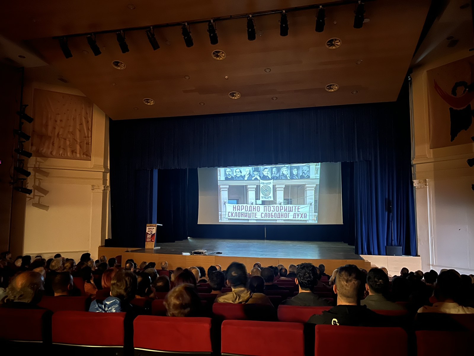 Η εκδήλωση ξεκίνησε με βίντεο-αφιέρωμα στα 25 χρόνια από τους ΝΑΤΟϊκούς βομβαρδισμούς στη Γιουγκοσλαβία, ενώ την εκδήλωση άνοιξε ο Γραμματέας της ΤΕ Χανίων του ΚΚΕ, Σπύρος Αγριμάκης.