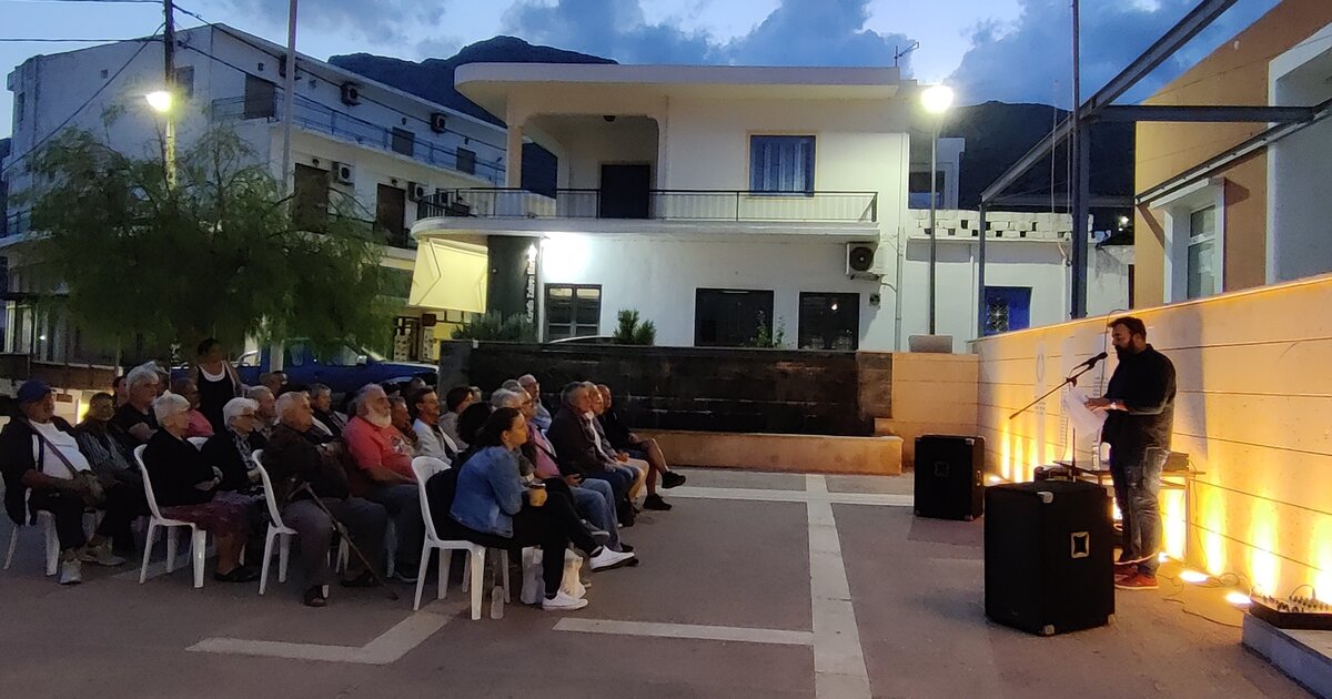 « Εδώ στη Ζάκρο, σε ένα από το πιο απομακρυσμένα χωριά του Δήμου Σητείας, άρα και της Κρήτης, μας δίνεται η δυνατότητα να σας τιμήσουμε... να τιμήσουμε ότι οι Ζακρίτισσες και οι Ζακρίτες, οι Καρυδιανές και οι Καρυδιανοί δεν το βάλατε κάτω με το να μεταναστεύσετε από αυτό τον υπέροχο τόπο, αφού όποτε χρειάστηκε υπερασπιστήκατε τη ζωή σας και των παιδιών σας. Για παράδειγμα στους αγώνες για την διάσωση του Νοσοκομείου της Σητείας ή για να υψωθεί τοίχος αντίστασης απέναντι στις επενδύσεις των ενεργειακών “πράσινων κορακιών” που επιλέγουν για συνομιλητές τις κυβερνήσεις, τις περιφερειακές και δημοτικές αρχές και όχι τις τοπικές κοινωνίες. Μάλιστα με συντριπτικό ποσοστό, πάνω από 90% στην λαϊκή σας συνέλευση απορρίψατε την μετατροπή της περιοχής σας σε βιομηχανικό πάρκο ΑΠΕ γιατί ξέρετε ότι αυτό θα σήμαινε και το οριστικό τέλος για τον τόπο σας.