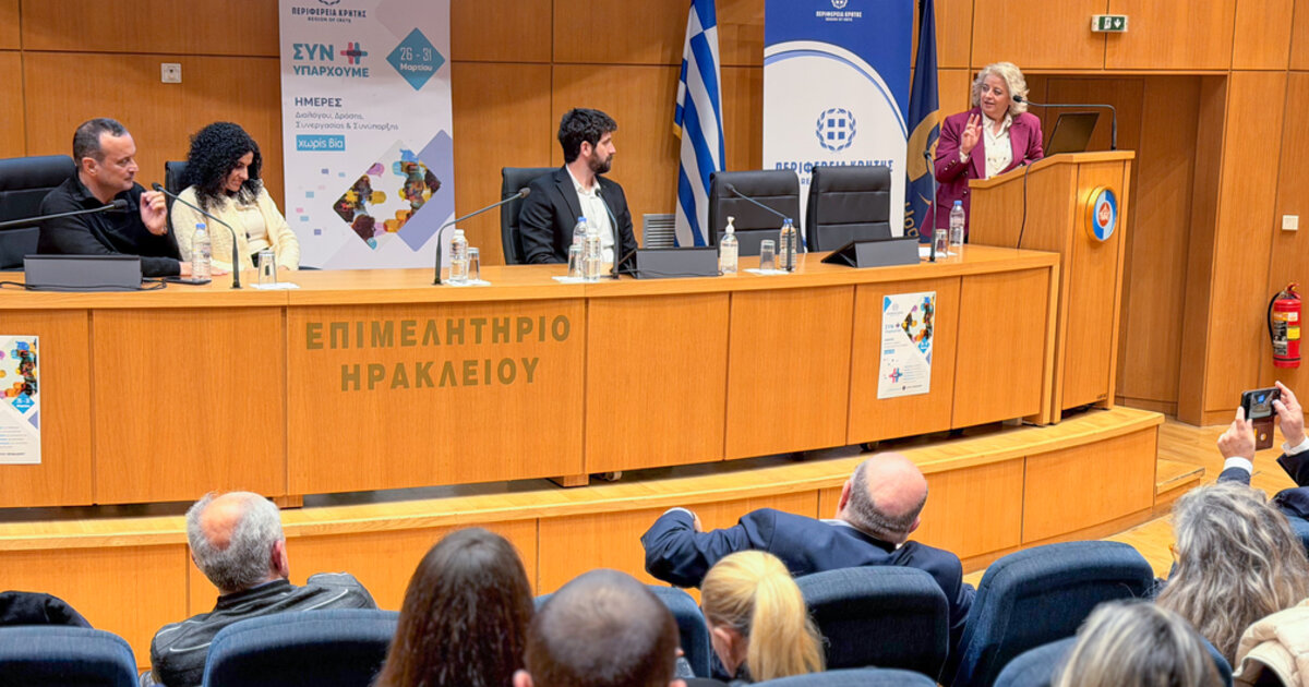 Η πρωτοβουλία της Περιφέρειας Κρήτης, σε συνδιοργάνωση με τον Δήμο Ηρακλείου, ανέδειξε την επιτακτική ανάγκη για ουσιαστικό διάλογο και κοινωνική συνοχή με επίκεντρο την πρόληψη της βίας.