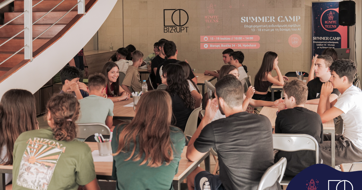 Με επιτυχία πραγματοποιήθηκε από τον οργανισμό του Bizrupt το Summer Camp επιχειρηματικότητας του “Ignite Teens” για άτομα εφηβικής ηλικίας -13 έως 18 ετών- με την υποστήριξη της Περιφέρειας Κρήτης, του Περιφερειακού Ταμείου Ανάπτυξης Κρήτης και του Youth Crete.