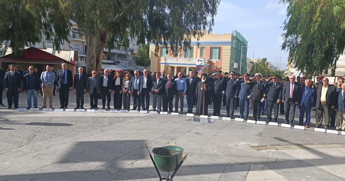 Νωρίτερα στον Ιερό Μητροπολιτικό Ναό του Αγ. Μηνά τελέστηκε επίσημη Δοξολογία και έγινε ομιλία για τον σημερινό εορτασμό από στέλεχος των Ενόπλων Δυνάμεων της Φρουράς Ηρακλείου.