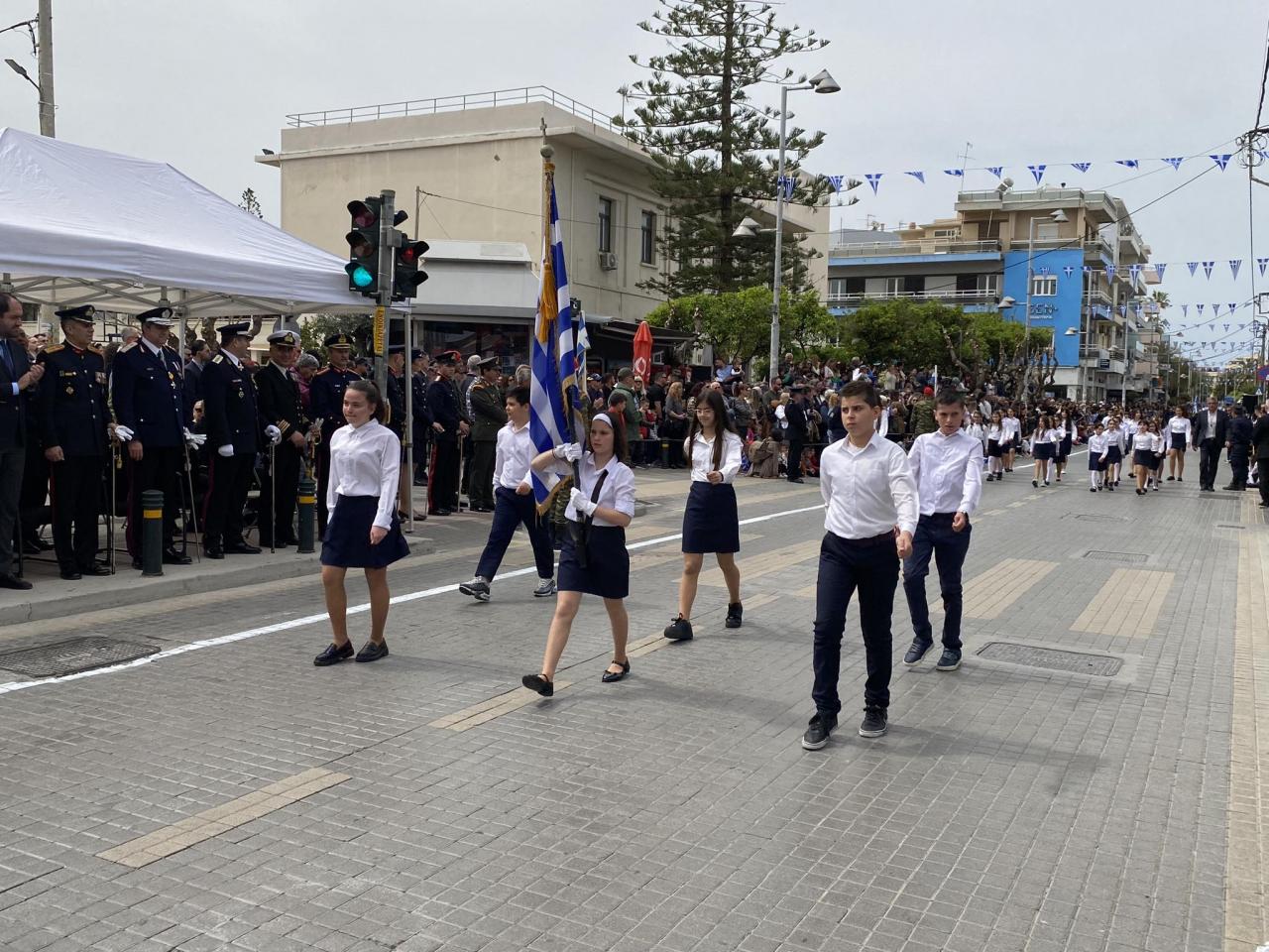 Κορυφώθηκαν οι εκδηλώσεις για τον εορτασμό της Εθνικής Επετείου στο Ρέθυμνο, με την μεγάλη μαθητική και στρατιωτική παρέλαση στην Λεωφόρο Κουντουριώτη.