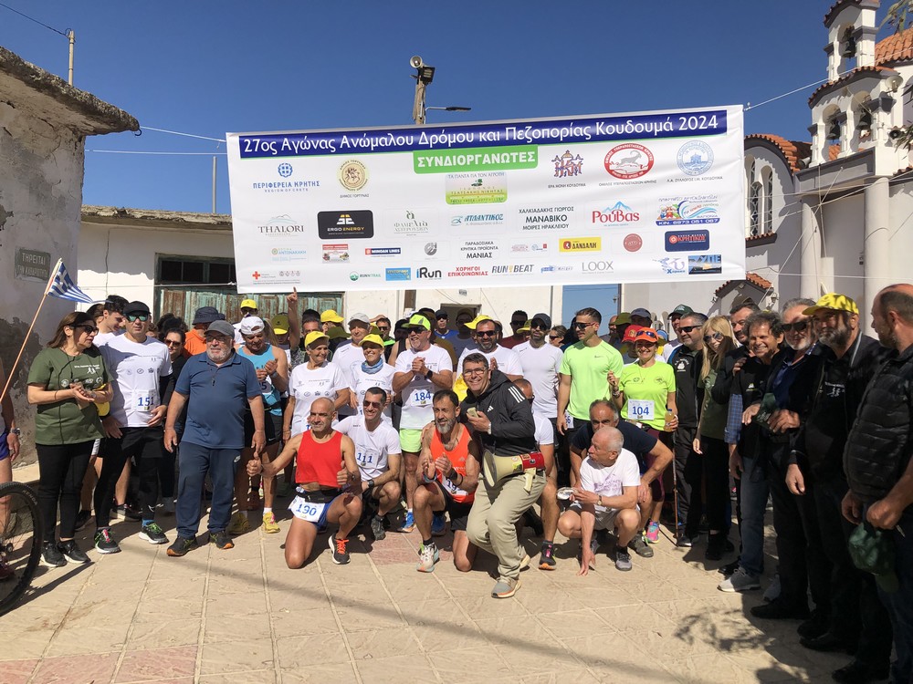 Με μεγάλη συμμετοχή δρομέων και πεζοπόρων, ηλικίας 16 έως… 93 ετών, με την υποστήριξη δεκάδων εθελοντών και με την παρουσία πλήθους θεατών και προσκυνητών, που χειροκρότησαν θερμά την προσπάθεια όλων των αθλητών, πραγματοποιήθηκε ο 27ος Αγώνας Ανώμαλου Δρόμου και Πεζοπορίας Κουδουμά. Στην γενική κατάταξη, την πρώτη θέση στους άνδρες κατέλαβε ο Γιάννης Θωμαδάκης με χρόνο 1:41:19 και στις γυναίκες η Δήμητρα Βίτσα με χρόνο 2:14:28. Τον αγώνα τίμησε με την συμμετοχή του o παραολυμπιονίκης και παγκόσμιος πρωταθλητής, Μανώλης Στεφανουδάκης.