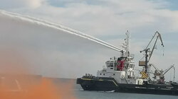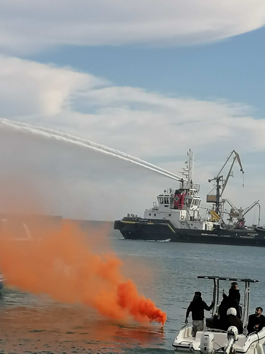 Σκάφη της Πυροσβεστικής Υπηρεσίας και του Λιμενικού δημιούργησαν υδάτινους πίδακες που εντυπωσίασαν τους παρευρισκόμενους ενώ ηχούσαν δυνατά οι κόρνες των σκαφών, αναγγέλλοντας το καινούργιο, το νέο, το χαρμόσυνο και ελπιδοφόρο μήνυμα της φώτισης και της καθαρτήριας αναγέννησης.
