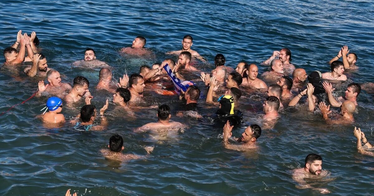 Μικροί και μεγάλοι στα κρύα νερά για να πιάσουν τον σταυρό