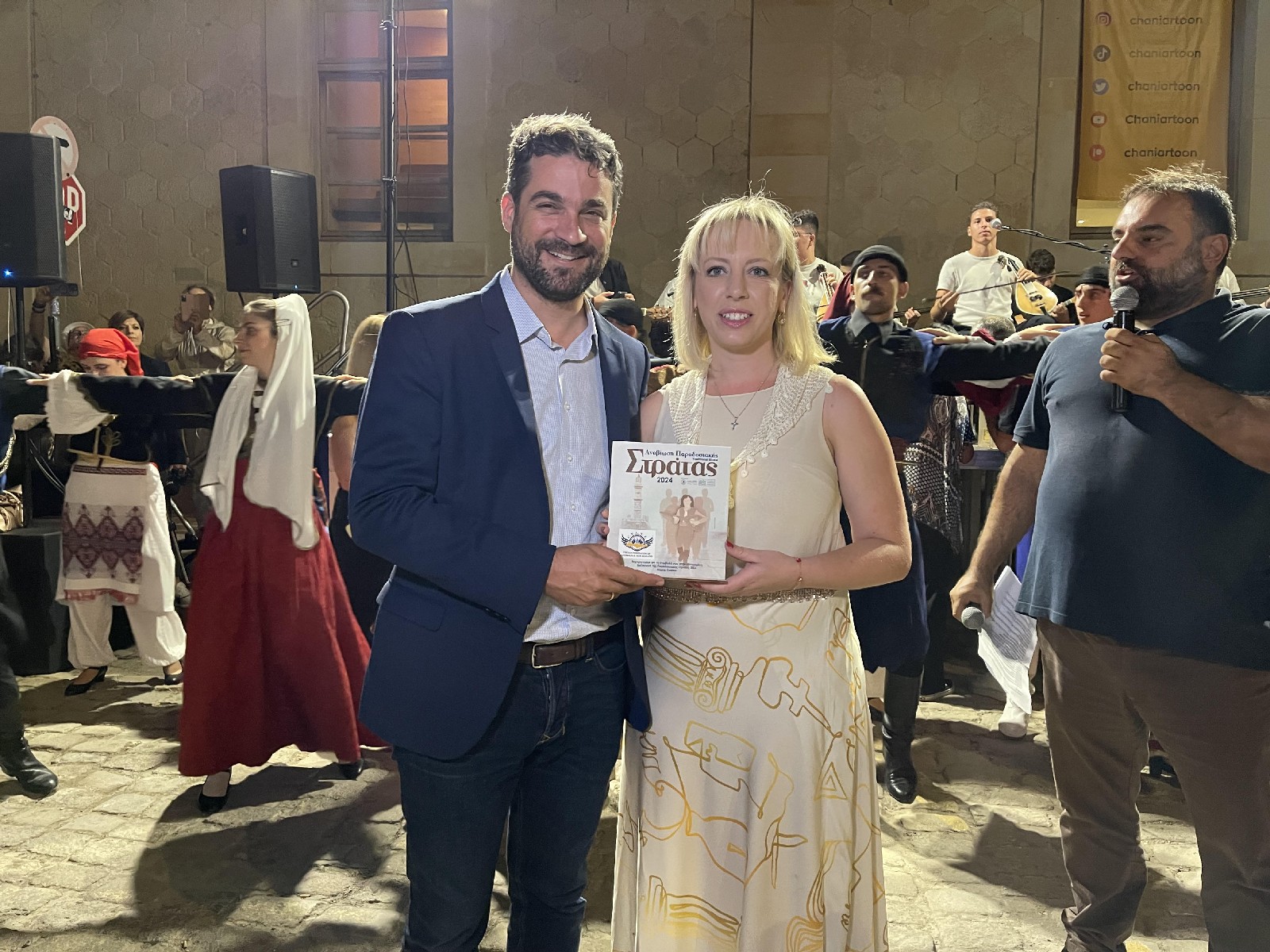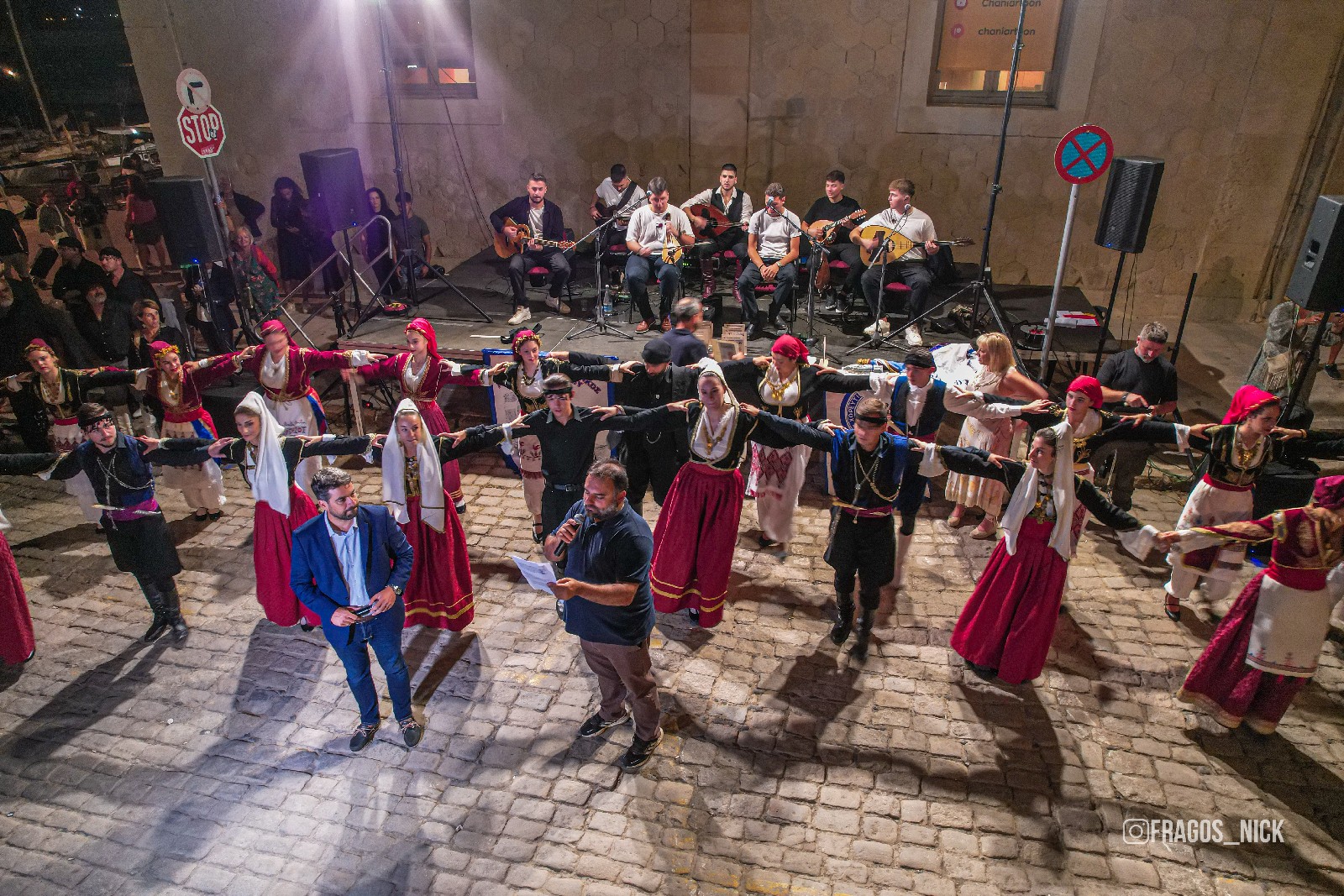 Την εκδήλωση πλαισίωσαν όλοι οι Σύλλογοι που συμμετείχαν στην Παραδοσιακή Στράτα 2024, οι οποίοι, ξεκινώντας από το Ναυτικό Μουσείο από την μια πλευρά και το Θέατρο Βλησίδη από την άλλη, διέσχισαν με μουσικές και ριζίτικα τραγούδια το Ενετικό Λιμάνι για να ενωθούν, χορεύοντας την κρητική σούστα, στην Πλατεία Κατεχάκη.