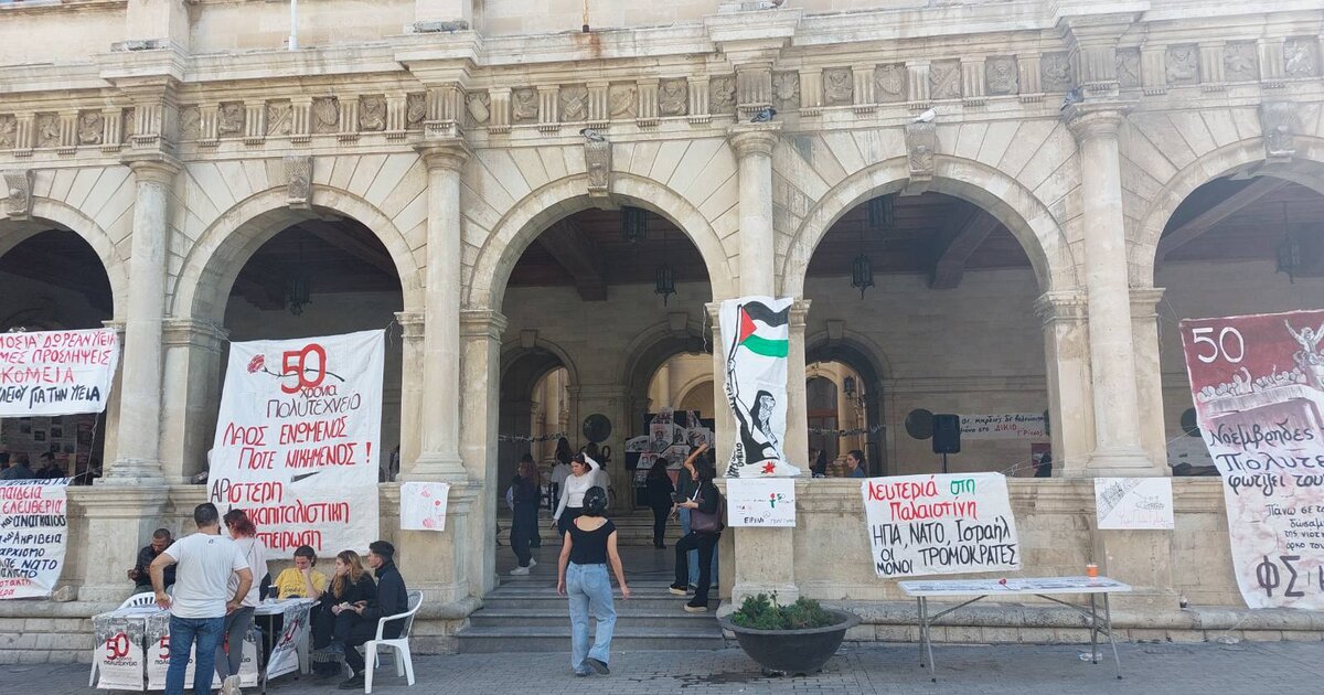 Με πανό και συνθήματα για τα 50 χρόνια από την εξέγερση του Πολυτεχνείου, σε εξέλιξη βρίσκεται το διήμερο εορτασμού στη Λότζια, με αποφάσεις των Φοιτητικών Συλλόγων του Ηρακλείου.