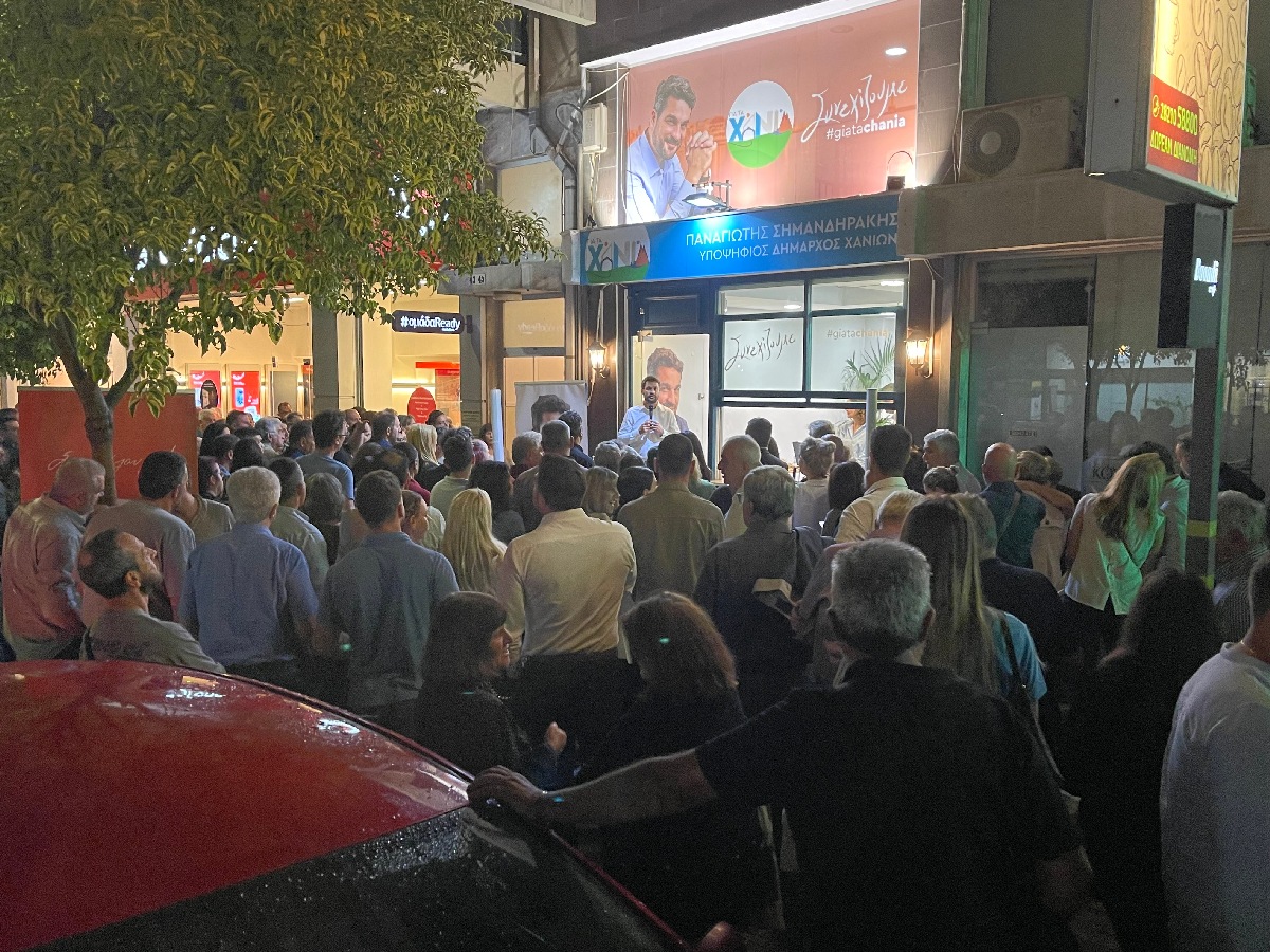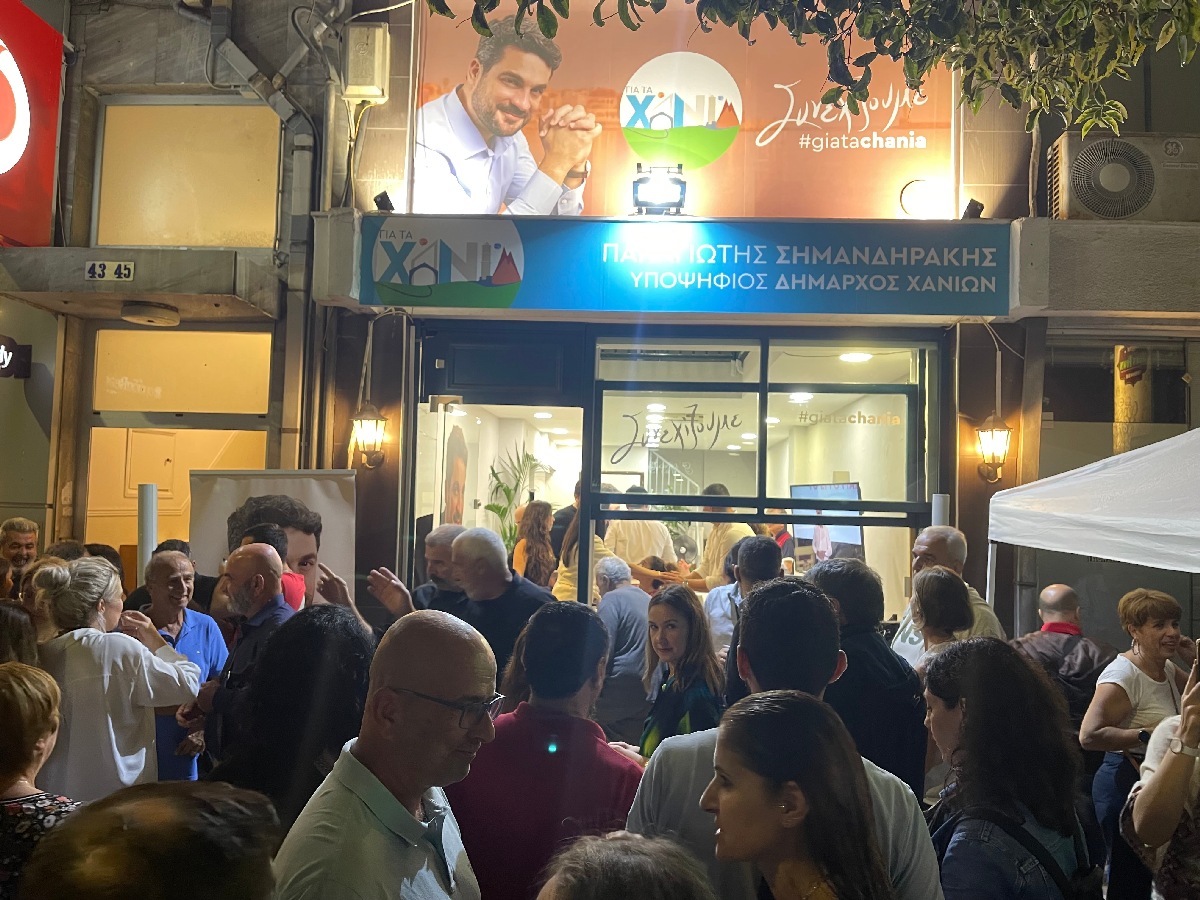 Σε πανηγυρικό κλίμα, με ενθουσιασμό και ορμή για την εκλογική αναμέτρηση στον Δήμο Χανίων, εγκαινιάστηκε το βράδυ της Πέμπτης 28/9 το εκλογικό κέντρο του συνδυασμού «ΓΙΑ ΤΑ ΧΑΝΙΑ» στο κέντρο της πόλης.