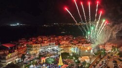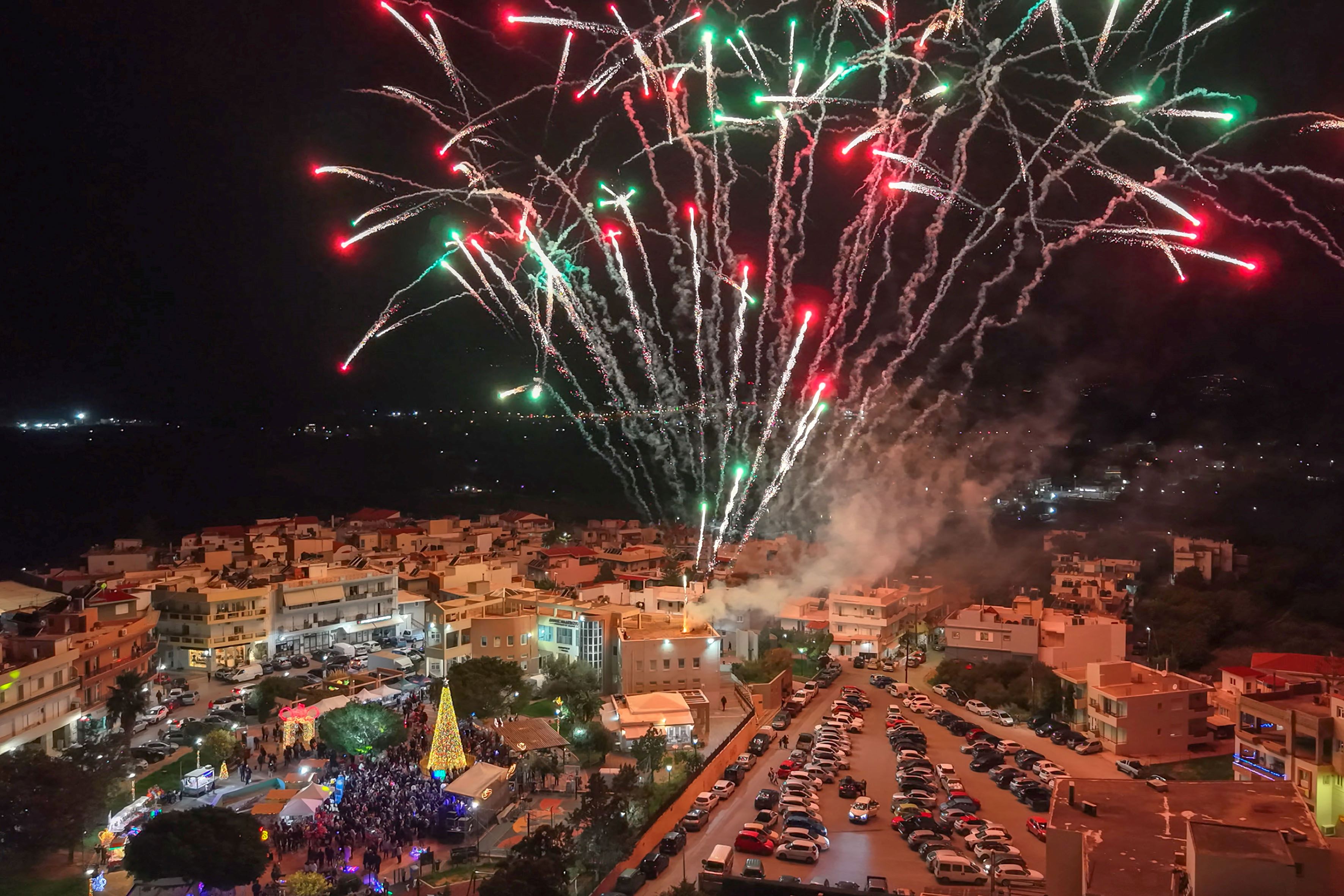 Με το άναμμα του δέντρου, δεκάδες πυροτεχνήματα φώτισαν τον ουρανό, προσφέροντας ένα εντυπωσιακό θέαμα που ενθουσίασε μικρούς και μεγάλους.