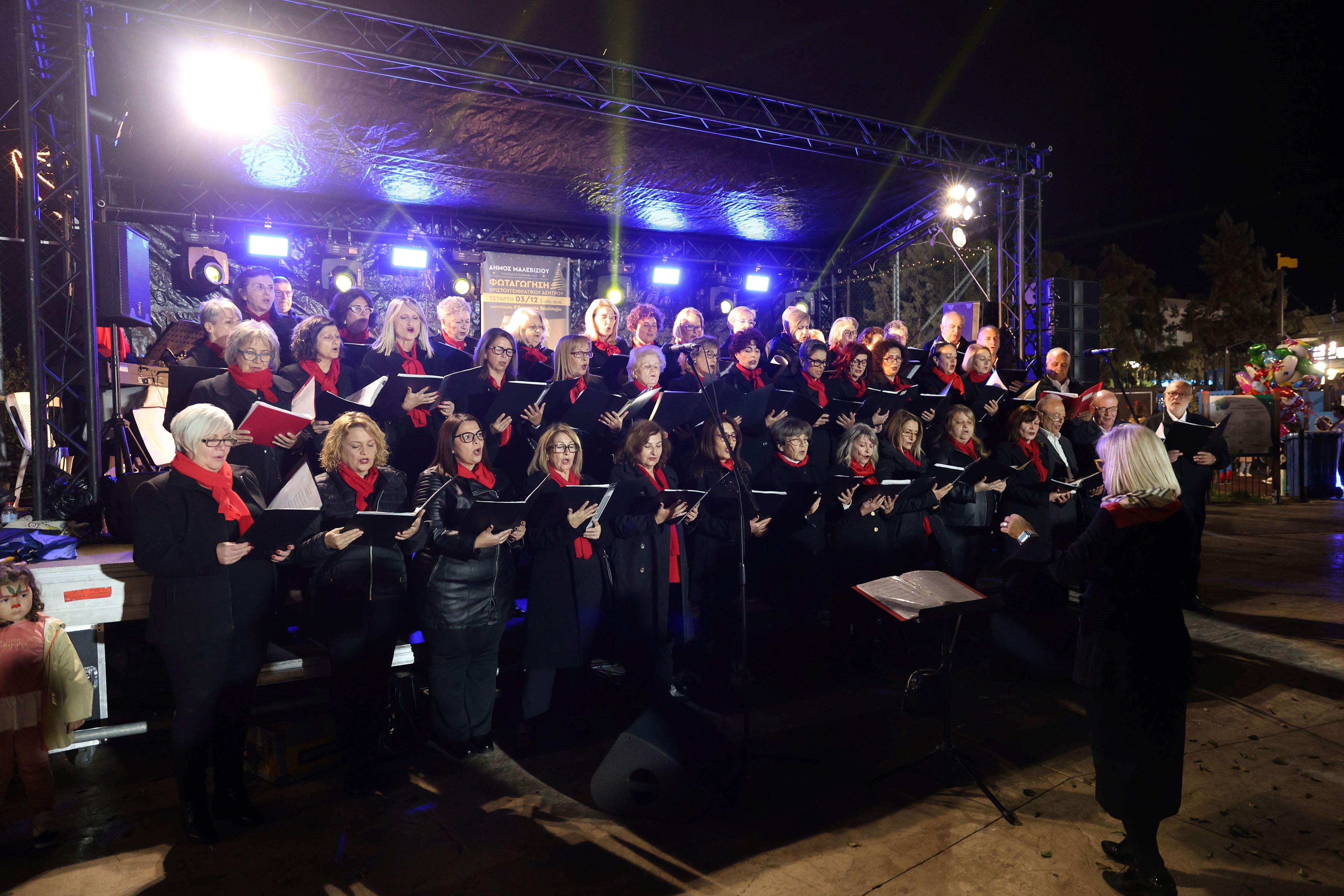 Η εκδήλωση, την οποία παρουσίασε η Κωνσταντίνα Παπαδοπούλου, ξεκίνησε με τη Δημοτική Χορωδία Μαλεβιζίου, που ερμήνευσε κάλαντα από διάφορες περιοχές της Ελλάδας και αγαπημένα χριστουγεννιάτικα τραγούδια, δημιουργώντας μια ζεστή, γιορτινή ατμόσφαιρα. Μετά τη φωταγώγηση, το συγκρότημα των Λευτέρη και Μανούσου Καλλέργη ανέβασε τον ρυθμό και διασκέδασε το κοινό με ζωντανή μουσική.