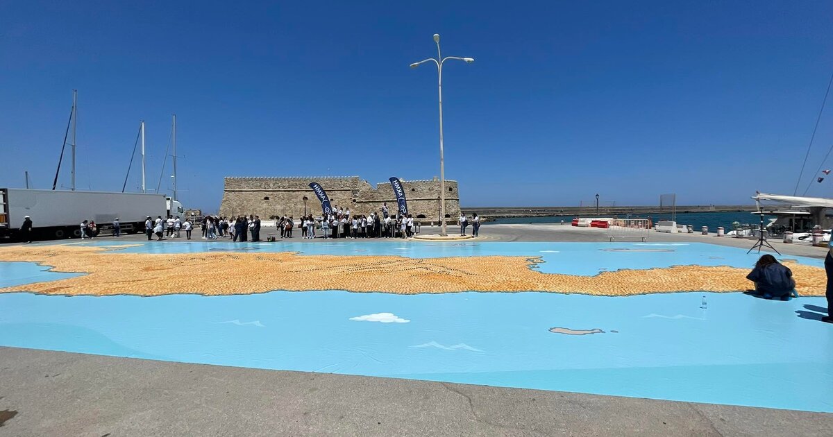 Τον πιο γλυκό χάρτης της Κρήτης, από 37.531 παραδοσιακά καλιτσούνια -γνωστά και ως «λυχναράκι»- έφτιαξαν το πρωί του Σαββάτου, στο ενετικό λιμάνι του Ηρακλείου!