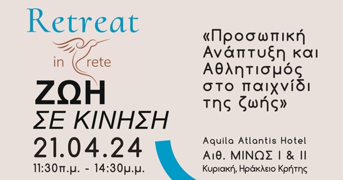 Ο Αθλητικός Σύλλογος ΛΑΒΡΥΣ και το Retreat in Crete με την υποστήριξη της Περιφέρειας Κρήτης διοργανώνουν εκδήλωση που συνδυάζει την προσωπική ανάπτυξη με την αθλητική δράση, με τίτλο "Ζωή σε Κίνηση: Αθλητισμός & Προσωπική Ανάπτυξη στο Παιχνίδι της Ζωής".