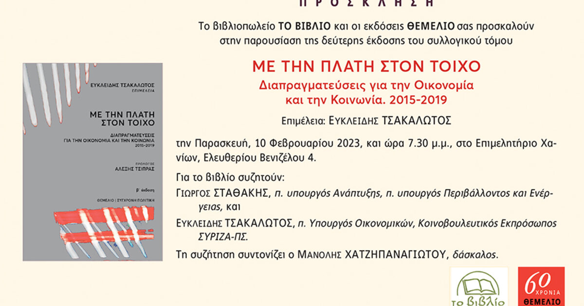 Το βιβλιοπωλείο ΤΟ ΒΙΒΛΙΟ και οι εκδόσεις ΘΕΜΕΛΙΟ διοργανώνουν παρουσίαση της δεύτερης έκδοσης του συλλογικού τόμου