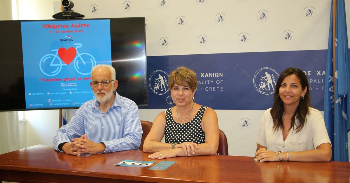 Σε συνέντευξη Τύπου που παραχωρήθηκε στο Δημαρχείο Χανίων, ο Πρόεδρος του Συλλόγου «Ορίζοντας», Σπύρος Αδοντάκης, η Αντιδήμαρχος Κοινωνικής Πολιτικής του Δήμου Χανίων, Ελένη Ζερβουδάκη και η κοινωνική λειτουργός του Συλλόγου, Ρούλα Δρακάκη, απηύθυναν το δικό τους κάλεσμα, να γιορτάσουμε όλοι μαζί, συγκεντρώνοντας όσα περισσότερα χιλιόμετρα αγάπης μπορούμε με τα ποδήλατά μας, διαδίδοντας το μήνυμα: “Ο καρκίνος μπορεί να νικηθεί!” και δίνοντας δύναμη σε όσους νοσούν και δίνουν το δικό τους καθημερινό αγώνα.