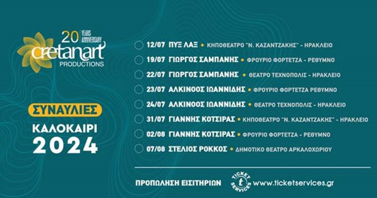 Μεγάλες συναυλίες από την Cretanart Productions σε ένα επετειακό καλοκαίρι!