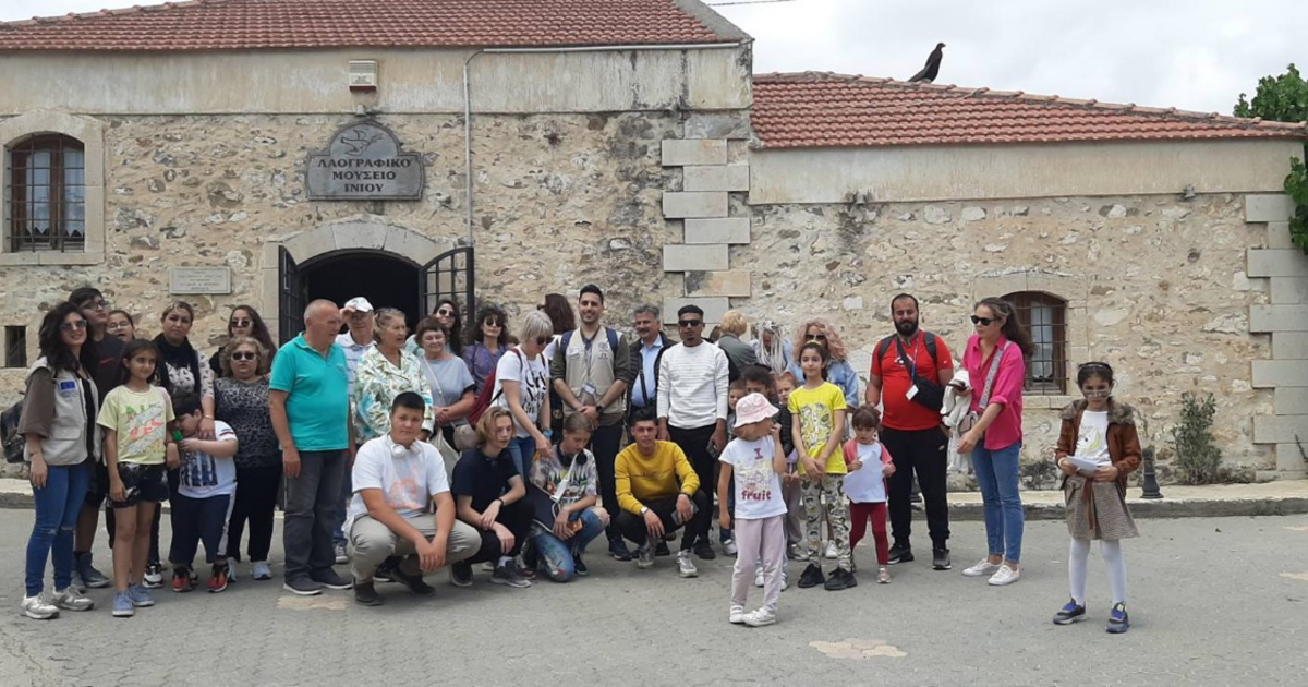 Στην συνέχεια οι εκδρομείς ξεναγήθηκαν στο Λαογραφικό Μουσείο Ινίου, το οποίο διαθέτει πλούσιο λαογραφικό υλικό εντυπωσιάζοντας τους επισκέπτες, οι οποίοι έδειξαν μεγάλο ενδιαφέρον αναγνωρίζοντας κοινά πολιτισμικά στοιχεία με την δική τους παράδοση. Στην συνέχεια κατευθύνθηκαν για το μεσημεριανό γεύμα στο Πολύκεντρο Ινίου, όπου και εκεί τους περίμενε η φιλοξενία και η ζεστασιά των μελών του Πολιτιστικού Συλλόγου προσφέροντας τους μετά το φαγητό πλούσια κεράσματα με ρακί, πίτες και γλυκό που είχαν ετοιμάσει χειροποίητα οι γυναίκες του συλλόγου. Τα παιδιά, επίσης, πήραν στα χέρια τους μολύβια, μαρκαδόρους και άρχισαν να ζωγραφίζουν στο χαρτί τις όμορφες αναμνήσεις τους από το χωριό, αφήνοντας έκπληκτους τους τοπικούς φορείς και κατοίκους του χωριού με τις δημιουργίες που παρουσίασαν. Μαζί επίσης με τα παιδιά δεν έχασαν την ευκαιρία να ζωγραφίσουν ακόμα και οι μεγαλύτεροι, ενώ η ατμόσφαιρα ήταν συγκινητική καθώς ακούστηκαν παιδικές φωνές αυθόρμητα να τραγουδούν με νοσταλγία τραγούδια της πατρίδας τους. Μια λέξη ήταν γνωστή για μας από τους στίχους των τραγουδιών «παλεστίν παλεστίν» κ.α.
