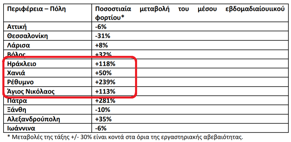 Ηράκλειο: Την τελευταία εβδομάδα, 10-16/01/22, στην πόλη του Ηρακλείου, η εβδομαδιαία μέση τιμή του ιικού φορτίου των αστικών λυμάτων παρουσίασε αύξηση (+118%) σε σχέση με την προηγούμενη εβδομάδα, 03-09/01/22.