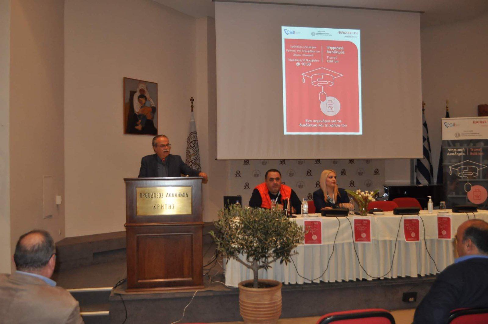 Η παραπάνω εκδήλωση πραγματοποιήθηκε με αφορμή την Παγκόσμια Ημέρα Κατά Της Σωματικής Βίας Και Κακοποίησης του Παιδιού, όπως έχει ανακηρυχθεί η 19η Νοεμβρίου από τον Ο.Η.Ε, και έγινε στο πλαίσιο του Travel Edition του Ινστιτούτου CSI με την υποστήριξη της Εurolife FFH. Ο Δήμαρχος Πλατανιά κ. Γιάννης Μαλανδράκης, στον χαιρετισμό του τόνισε πόσο επιτακτική είναι η ανάγκη ενημέρωσης και ευαισθητοποίησης των νέων αλλά και της κοινωνίας γενικότερα απέναντι στους κινδύνους που κρύβει το διαδίκτυο, ειδικά όταν η πρόσβαση σε αυτό είναι πλέον τόσο άμεση κι ελεύθερη σε όλους, ενώ επισήμανε ότι δε χρειάζεται να το δαιμονοποιούμε αλλά να εκπαιδευτούμε στην ορθή διαχείρισή του. Επίσης ευχαρίστησε θερμά τον κο Σφακιανάκη Μανώλη για την παρουσία του, όπως και τους συνεργάτες του.