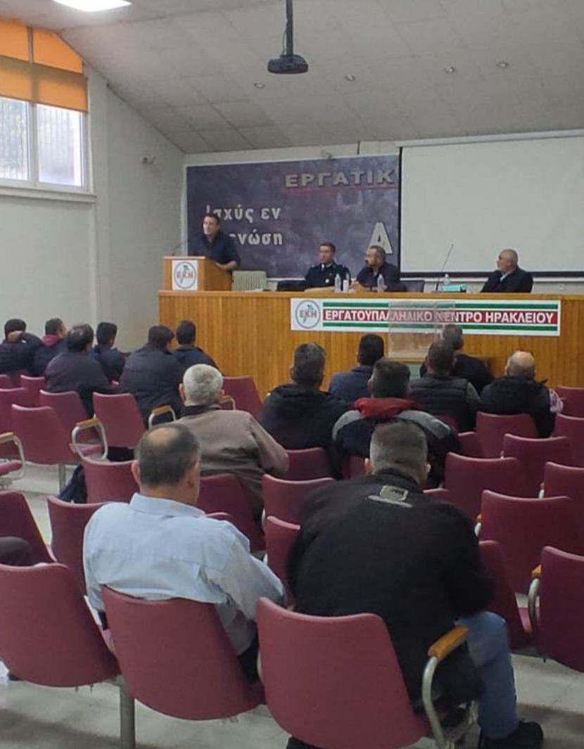 Στην κατάμεστη αίθουσα του Εργατικού Κέντρου Ηρακλείου, το Προεδρείο του Σωματείου μας επεσήμανε ότι η επίλυση ζητημάτων όπως ο απαράδεκτος νόμος για τα κλαρκ, οι συλλογικές συμβάσεις εργασίας, οι παλαιοί χειριστές των δήμων, που δεν έχουν μπει στα βαρέα και ανθυγιεινά και συνταξιοδοτικά ζητήματα αποτελούν προτεραιότητα μας.