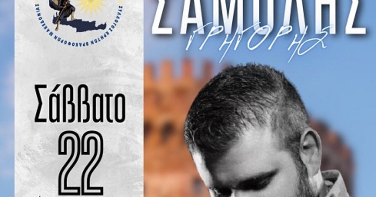 Ο Σύλλογος Κρητών Βρακοφόρων Μακεδονίας διοργανώνει παραδοσιακό Κρητικό γλέντι το Σάββατο 22/02/2025 στις 21:00 το βράδυ, στην ΔΕΘ στο Περίπτερο 16, στη Θεσσαλονίκης, με προσκεκλημένους τον ανερχόμενο Γρηγόρη Σαμόλη και το συγκρότημα του.