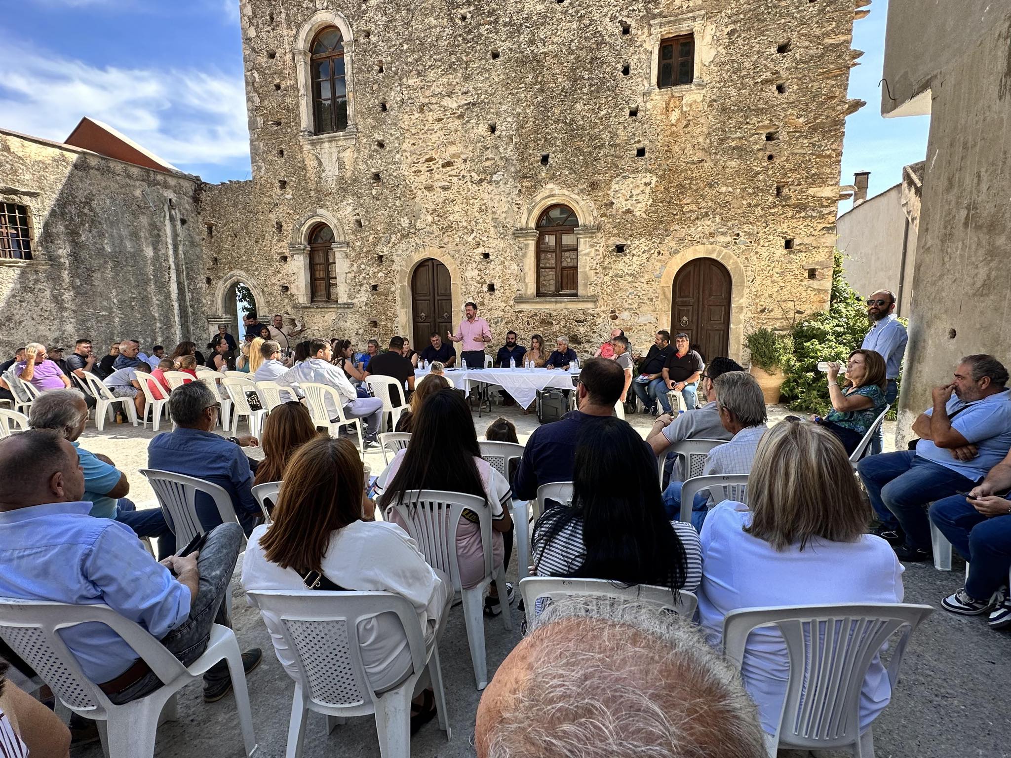 «Μαζί στην περήφανη Ροδιά. Εδώ όπου η ομορφιά του τοπίου συναντά την ομορφιά των κατοίκων. Ανοιχτή συζήτηση σε ένα μνημειακό τοπόσημο. Τον Πύργο Καλλεργών. Την ενετική έπαυλη για την οποία καταφέραμε να εξασφαλίσουμε το σημαντικό έργο της αποκατάστασης και ανάδειξής της σε συνεργασία με το Υπουργείο Πολιτισμού και τον Οργανισμό Φυσικού Περιβάλλοντος & Κλιματικής Αλλαγής. Προχωράμε βήμα – βήμα σε συνεργασία με την Αρχαιολογία για τις αναγκαίες μελέτες. Εδώ, δίπλα στον παρακείμενο ναό της Θεοτόκου που η ιστορία λέει ότι έδωσε το όνομά του στο χωριό, συμφωνήσαμε ξανά με τους περήφανους Ροδιανούς ότι θέλουμε το Μαλεβίζι να ρίχνει φως στην ιστορία και τον πολιτισμό που γέννησε αυτός ο τόπος. Και μαζί να ρίχνει φως στη ζωή και το μέλλον όλων. Όπως πράττουμε, με: