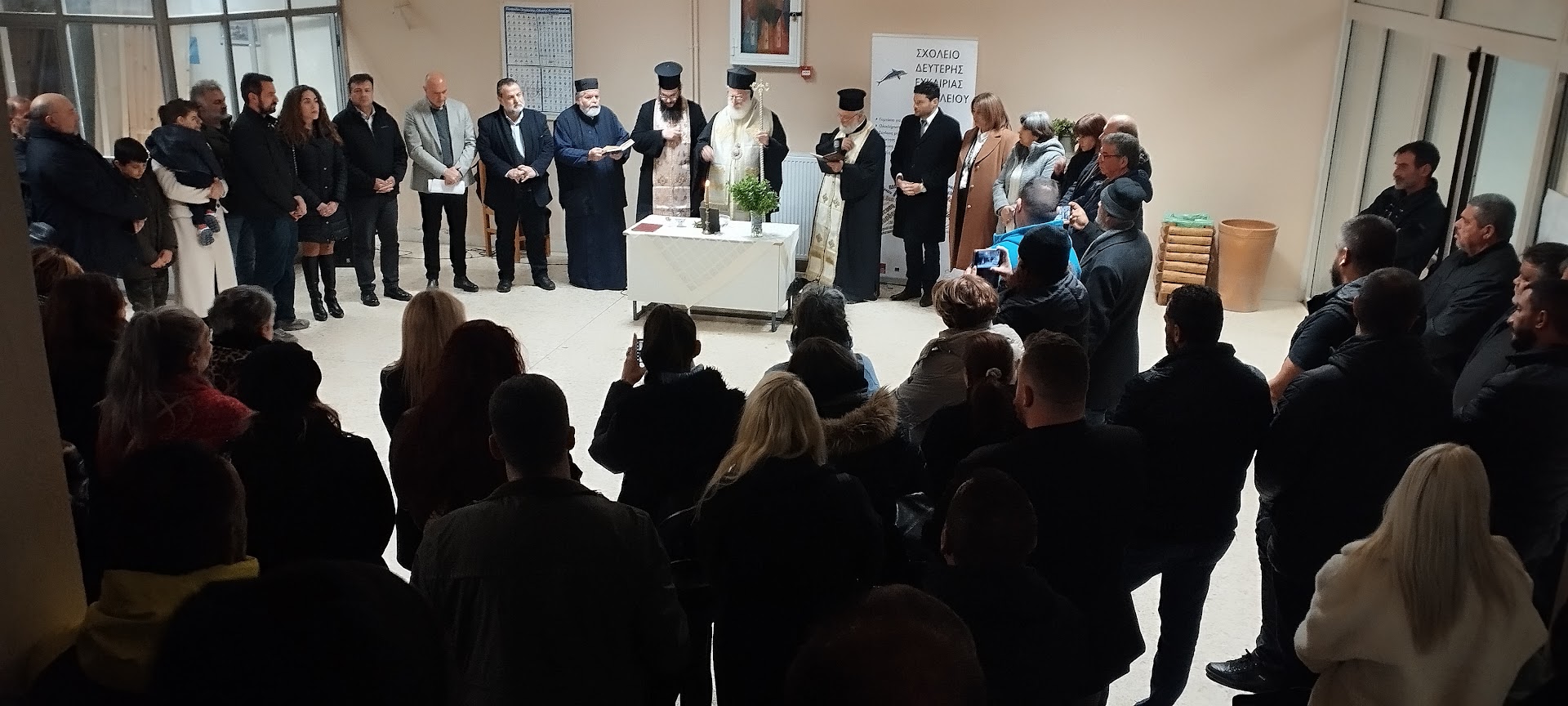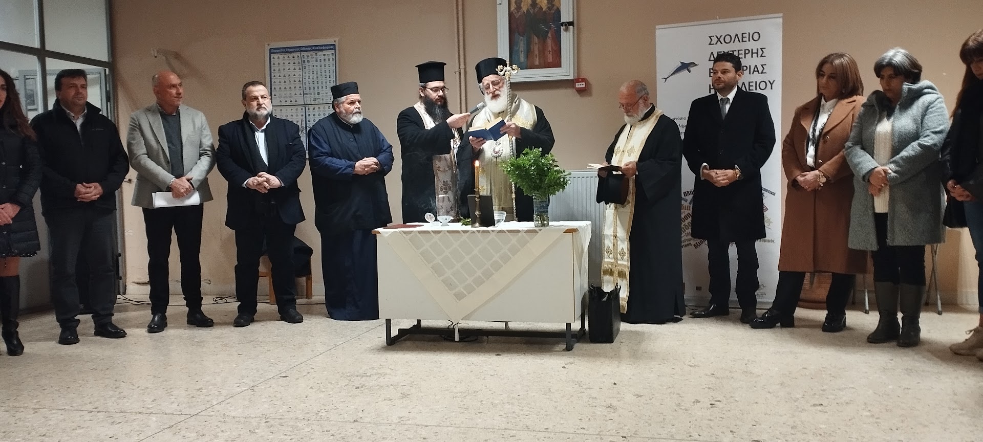 Τον αγιασμό που σηματοδότησε τη λειτουργία μιας χρονιάς γεμάτης στόχους και ευκαιρίες, τέλεσε ο Μητροπολίτης Αρκαλοχωρίου, Καστελλίου και Βιάννου κ.κ. Ανδρέας με την παρουσία του Δημάρχου Μινώα Πεδιάδας Βασίλη Κεγκέρογλου, του Αναπληρωτή Περιφερειάρχη Γιώργου Πιτσούλη του Αντιπεριφερειάρχη Νίκου Συριγωνάκη, της εντεταλμένης Περιφερειακής Συμβούλου Θεοδώρας Κουντεντάκη, η οποία απηύθυνε χαιρετισμό εκ μέρους του Περιφερειάρχη Κρήτης Σταύρου Αρναουτάκη, του Περιφερειακού Συμβούλου Γιώργου Παπαδάκη, των Αντιδημάρχων, του Προέδρου του Δημοτικού Συμβουλίου, της Προέδρου της Δημοτικής Κοινότητας Καστελλίου, δημοτικών συμβούλων, φορέων της εκπαίδευσης, κατοίκων της περιοχής και φυσικά των εκπαιδευόμενων του Σχολείου Δεύτερης Ευκαιρίας.
