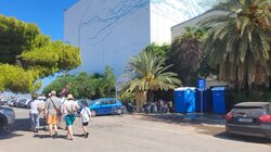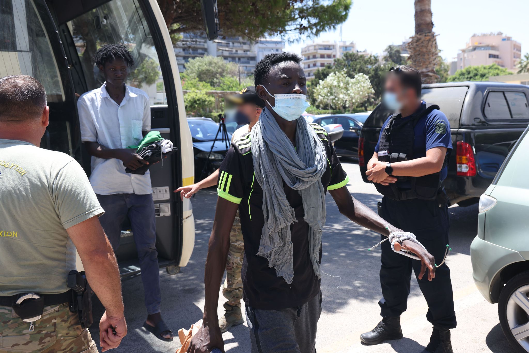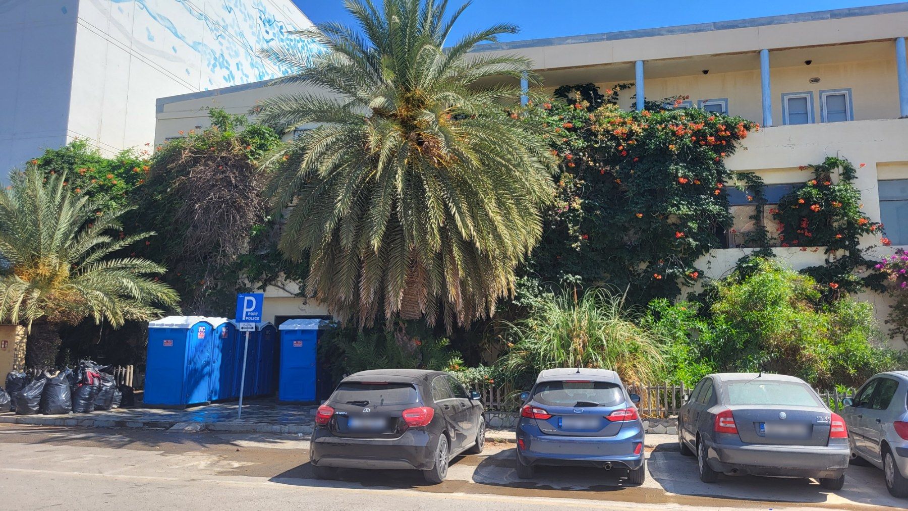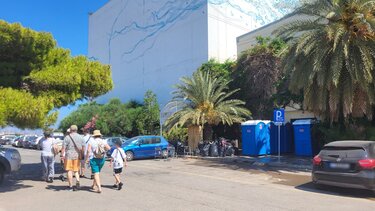 Πάντως η κατάσταση που επικρατεί εντός του κτιρίου δε "διαρρέει" εκτός. Πέραν των λιμενικών που περιφρουρούν το κτίριο, τίποτα άλλο δε μαρτυρά την κρίση του μεταναστευτικού που περνάει η Κρήτη. Άλλη μια ηλιόλουστη ημέρα, τουρίστες πάνε κι έρχονται, ενώ ο χώρος στάθμευσης είναι γεμάτος οχήματα.