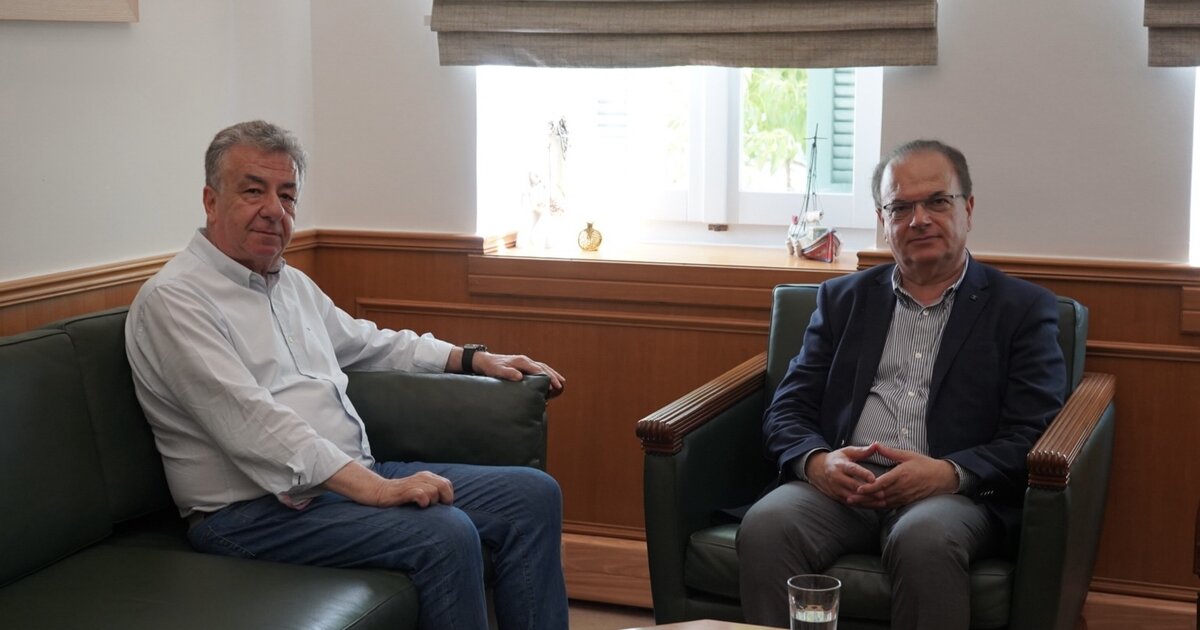 Συνάντηση εργασίας πραγματοποιήθηκε σήμερα στην Περιφέρεια Κρήτης μεταξύ του Περιφερειάρχη Σταύρου Αρναουτάκη και του Προέδρου της Περιφερειακής Ένωσης Δήμων Κρήτης και Δημάρχου Ρεθύμνης, Γιώργου Μαρινάκη.