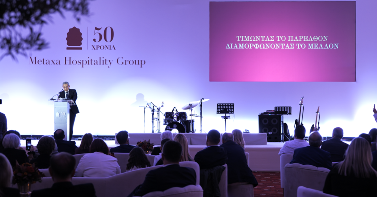 «Με βαθύ σεβασμό στο παρελθόν, ανοίγουμε νέους δρόμους για το μέλλον της φιλοξενίας», τόνισε στην ομιλία του ο Διευθύνων Σύμβουλος του Metaxa Hospitality Group κ. Ανδρέας Ν. Μεταξάς, απευθυνόμενος στους εκατοντάδες προσκεκλημένους -εκπροσώπους της Πολιτείας, των τοπικών αρχών, θεσμικών φορέων και επιχειρήσεων του τουρισμού, συνεργάτες, στελέχη και φίλους του Ομίλου- που τίμησαν με την παρουσία τους την εορταστική εκδήλωση στο συνεδριακό κέντρο «Μίκης Θεοδωράκης».