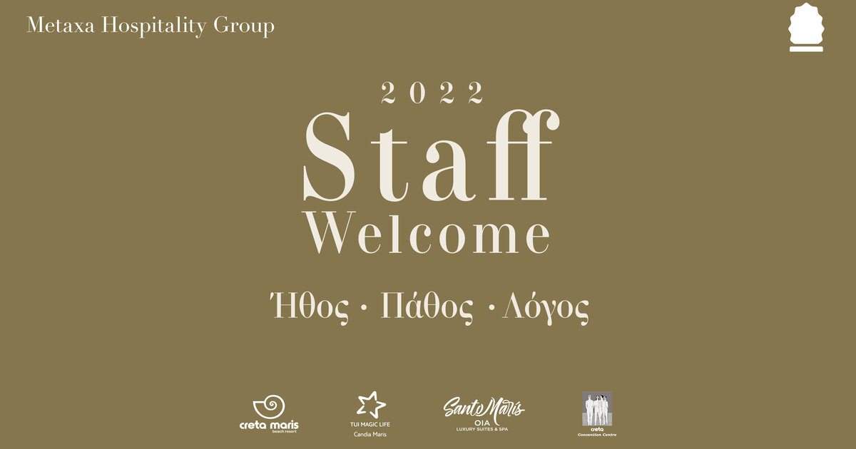 Με απόλυτη επιτυχία πραγματοποιήθηκε το καθιερωμένο «Staff Welcome» του Metaxa Hospitality Group, η ετήσια εκδήλωση-θεσμός για το καλωσόρισμα των εργαζομένων του, ενόψει της έναρξης της νέας τουριστικής σεζόν.