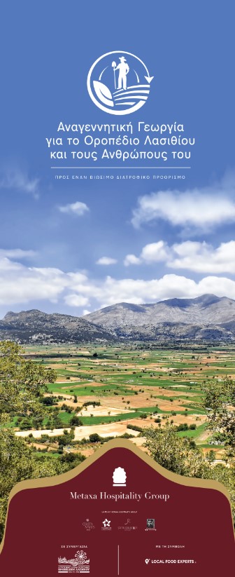 Μέσα από το πρωτοποριακό πρόγραμμα «Αναγεννητική Γεωργία για το Οροπέδιο Λασιθίου και τους Ανθρώπους του | Προς έναν βιώσιμο διατροφικό προορισμό», το Metaxa Hospitality Group εξασφαλίζει την αναγέννηση του εδάφους σε περίπου 40 στρέμματα αγροτικής γης και συνδιαμορφώνει, για πρώτη φορά στις υπηρεσίες φιλοξενίας, ένα ανθεκτικό, αναγεννητικό και φιλικό προς το περιβάλλον διατροφικό σύστημα, με μετρήσιμα περιβαλλοντικά, κοινωνικά και οικονομικά οφέλη.