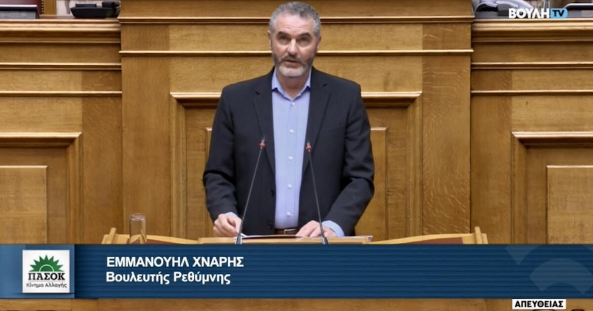 Στην Ολομέλεια της Βουλής των Ελλήνων, μίλησε ο Βουλευτής Ρεθύμνης και Υπεύθυνος του Κοινοβουλευτικού Τομέα Αγροτικής Ανάπτυξης του ΠΑΣΟΚ – Κινήματος Αλλαγής, Μανόλης Χνάρης, στο πλαίσιο της συζήτησης για το νομοσχέδιο του Υπουργείου Τουρισμού «Διατάξεις για την ενίσχυση της βιώσιμης τουριστικής ανάπτυξης».