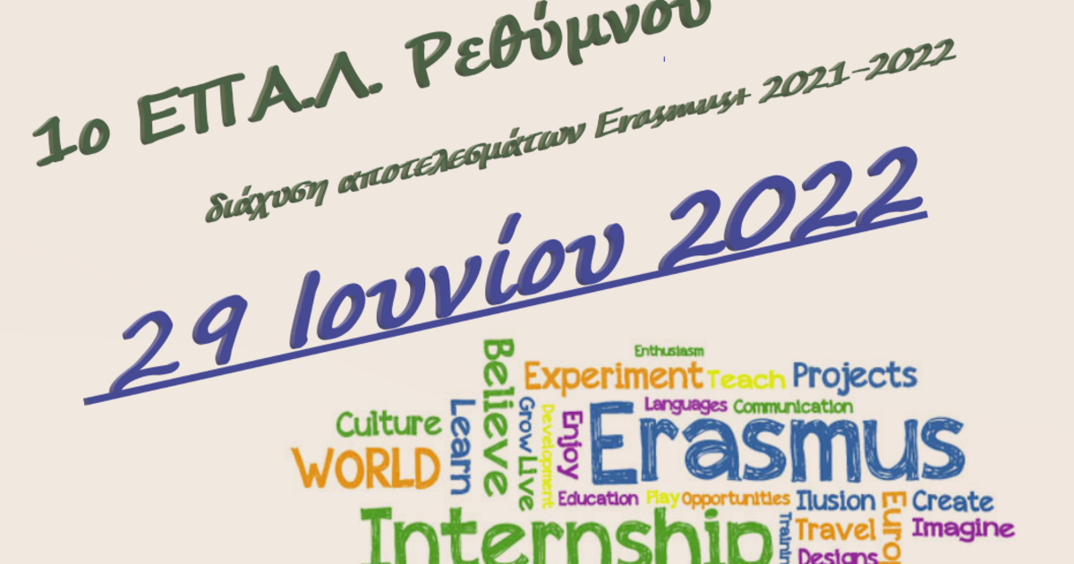 Η Διευθύντρια και ο Σύλλογος διδασκόντων του 1ου ΕΠΑ.Λ. Ρεθύμνου, προσκαλεί την εκπαιδευτική κοινότητα και γενικότερα την κοινωνία του Ρεθύμνου σε ημερίδα παρουσίασης του προγράμματος αυτού και των αποτελεσμάτων του.