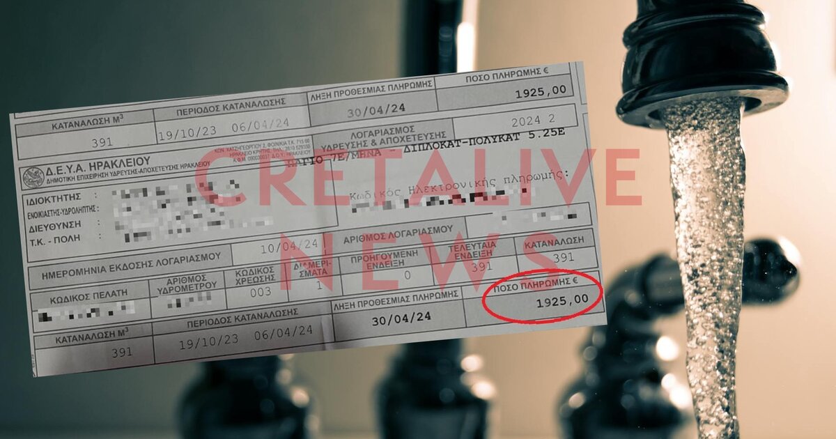 Αναγνώστης του Cretalive καταγγέλλει το πως από 52 ευρώ, ο λογαριασμός του νερού εκτοξεύτηκε στα 1925 ευρώ και καταδεικνύει την απίστευτη κατάσταση που βιώνουν πολλά νοικοκυριά στο Ηράκλειο μετά τα "έξυπνα" υδρόμετρα.