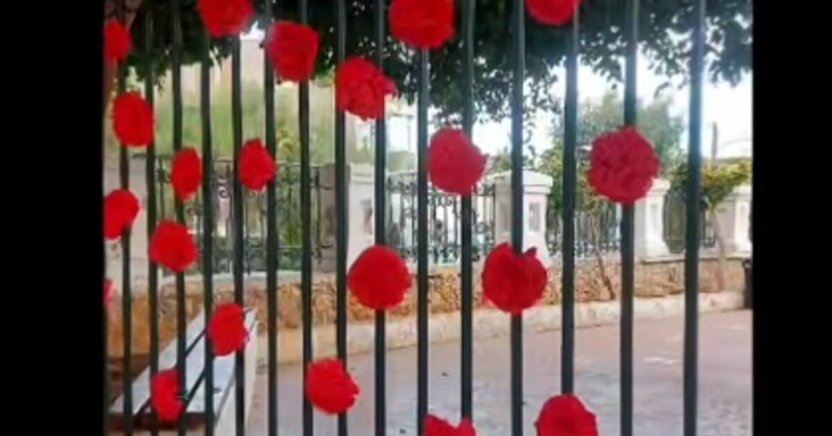 Μία σχολική καγκελόπορτα γεμάτη... γαρύφαλλα και μηνύματα!