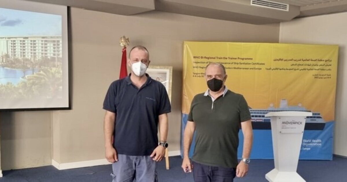 Μαζί με τον Αναπληρωτή Προϊστάμενο της Διεύθυνσης Υγειονομικού Ελέγχου και Περιβαλλοντικής Υγιεινής των Περιφερειακών Ενοτήτων Πειραιώς και Νήσων , Ιατρό Χαράλαμπο Βασιλείου, εκπροσώπησαν τη χώρα μας στο πρόγραμμα εκπαίδευσης υποψηφίων εκπαιδευτών για την επιθεώρηση πλοίων και την έκδοση πιστοποιητικών Υγιεινής Πλοίων μετά από πρόταση του Υπουργείου Υγείας.
