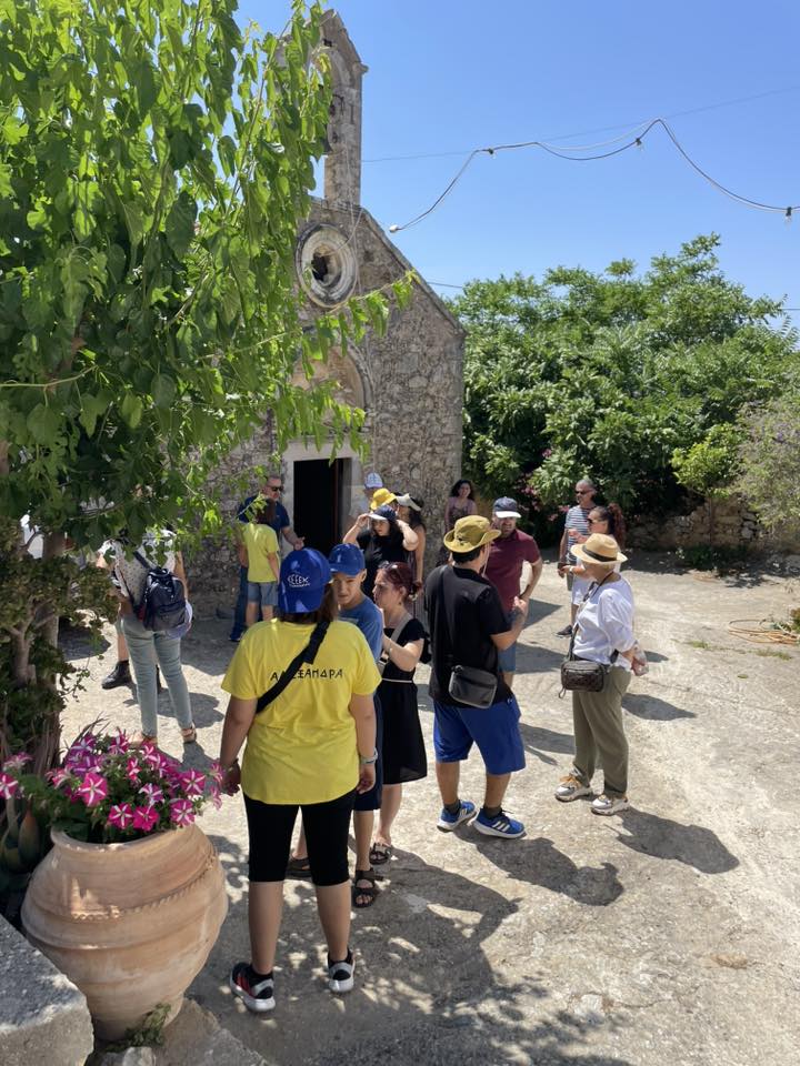 Η κυρία Μαρία Δαμιανάκη μας ξενάγησε στον βυζαντινό ναό του Αγίου Γεωργίου, ενώ οι κυρίες του Πολιτιστικού Συλλόγου Αποστολιανών, τράταρε τους μουσαφίρηδες μας το πιο γλυκό έθιμο της Πεδιάδας, τις ζαχαρωτές μαντινάδες.