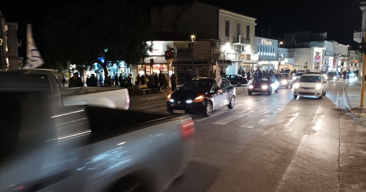 Στη μηχανοκίνητη πορεία που ακολούθησε, ξεσηκώθηκε το κέντρο και οι γειτονιές της πόλης με τα συνθήματα, τα αντιπολεμικά τραγούδια και τα κορναρίσματα"