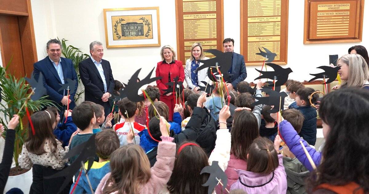Με παιδικές φωνές «πλημμύρισε» το πρωί η Περιφέρεια Κρήτης που επισκέφθηκαν οι μικροί μαθητές και μαθήτριες της πρώτης τάξης του 17ου δημοτικού σχολείου Ηρακλείου. Τα κάλαντα για την υποδοχή της Άνοιξης, τα «Χελιδονίσματα», αποτελούν παραδοσιακό έθιμο.
