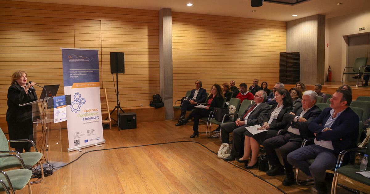 Μια σύνθετη εικόνα για την αγορά εργασίας στην Κρήτη, με θετικούς δείκτες αλλά και σοβαρές διαρθρωτικές προκλήσεις, αποτυπώθηκε στην εσπερίδα με θέμα «Η Αγορά Εργασίας στην Κρήτη σήμερα: Τάσεις και Μετασχηματισμοί», που διοργάνωσαν η Περιφέρεια Κρήτης και το Πανεπιστήμιο Κρήτης την Τετάρτη 17 Δεκεμβρίου 2025, στο Πολιτιστικό Κέντρο Ηρακλείου. Τα δεδομένα παρουσιάστηκαν στο πλαίσιο του Περιφερειακού Μηχανισμού Διάγνωσης Αναγκών Αγοράς Εργασίας, ενός δομικού έργου που υλοποιείται από το 2016 και βρίσκεται πλέον στη δεύτερη φάση του, με ορίζοντα έως το 2027.