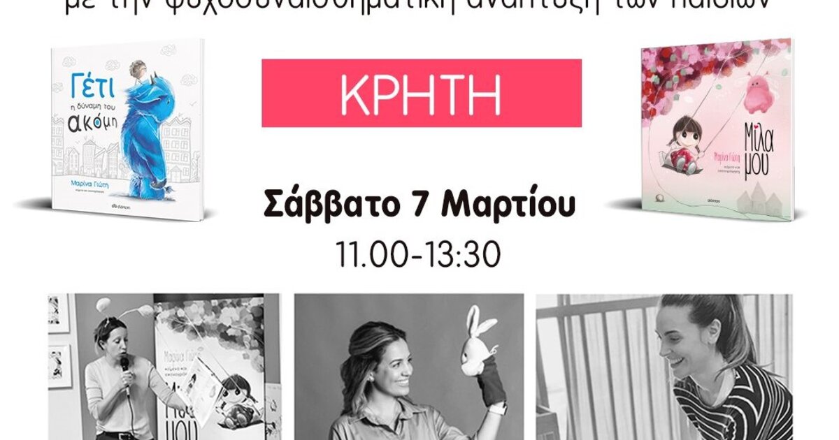 To βιωματικό σεμινάριο «Μίλα μου» για εκπαιδευτικούς βασισμένο στα best-seller παιδικά βιβλία της βραβευμένης συγγραφέως και εικονογράφου Μαρίνας Γιώτη που έχει γίνει ανάρπαστο, έρχεται στο Ηράκλειο!