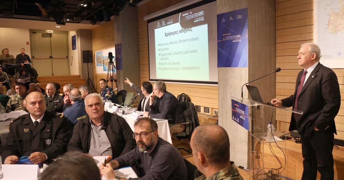 «Η Περιφέρεια Κρήτης διαχρονικά στηρίζει πρωτοβουλίες για την αντισεισμική προστασία και δεν εφησυχάζει», τόνισε σήμερα ο Περιφερειάρχης Κρήτης Σταύρος Αρναουτάκης χαιρετίζοντας την άσκηση επί χάρτου, η οποία διεξάγεται στο Πολιτιστικό Συνεδριακό Κέντρο Ηρακλείου.