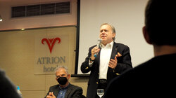 Την άποψη ότι μετά την εισβολή της Ρωσίας στην Ουκρανία η ελληνική κυβέρνηση ασφαλώς και έπρεπε να ακολουθήσει τις κυρώσεις που επέβαλαν ΝΑΤΟ και ΕΕ εξέφρασε ο Σπύρος Δανέλλης, διευκρινίζοντας ωστόσο ότι η εμπλοκή στον πόλεμο, με την αποστολή οπλισμού, ήταν απερίσκεπτη επιλογή, έξω από το πλαίσιο αρχών στις οποίες βασίζονταν μέχρι σήμερα οι ελληνορωσικές σχέσεις. Μίλησε για «θλιβερή εικόνα της ΕΕ ως άβουλου παρατηρητή της πολεμικής σύγκρουσης, καθώς είναι εξαρτώμενη ενεργειακά από τη Ρωσία και αμυντικά από τις ΗΠΑ» και εκτίμησε ότι η Ευρώπη αντιλαμβάνεται σήμερα ότι αν θέλει να είναι ελεύθερη πρέπει να είναι και ικανή να προστατέψει τον εαυτό της. Αναφερόμενος στην Ελλάδα ο κ. Δανέλλης σημείωσε ότι η φιλειρηνική πολιτική που πρέπει να ακολουθήσει, θα πρέπει να βασίζεται στο πνεύμα που οδήγησε στην συμφωνία των Πρεσπών και κατέληξε την ομιλία του λέγοντας: «Φανταστείτε σήμερα με την αστάθεια του πολέμου στη γειτονιά μας, στην Ευρώπη και σε ολόκληρο τον κόσμο, πόσο πιο δύσκολες θα ήταν οι συνθήκες για την Ελλάδα εάν παρέμενε ανοιχτό το Μακεδονικό».