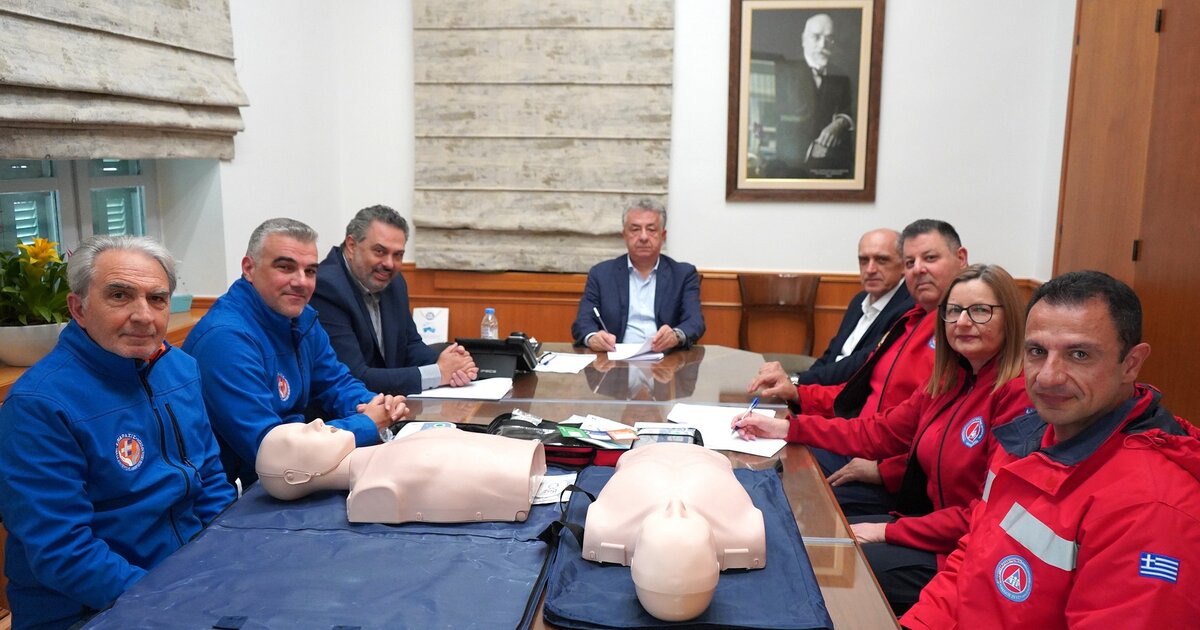 Μνημόνιο συνεργασίας συνυπέγραψαν σήμερα ο Περιφερειάρχης Κρήτης Σταύρος Αρναουτάκης με την πρόεδρο της ομάδας εθελοντών διασωστών «Φίλιος Ζεύς», Έρη Χαιρέτη και τον πρόεδρο της ομάδας διαχείρισης ανθρωπιστικών κρίσεων «ΕΠΙΔΡΑΣΙΣ» Δημήτρη Στειακάκη με στόχο την εκπαίδευση των πολιτών στην παροχή πρώτων βοηθειών (ΚΑΡΠΑ) με την χρήση εξωτερικού απινιδωτή.