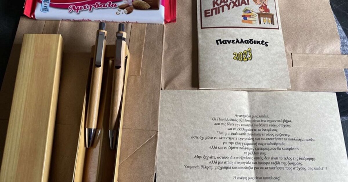 Με ένα συμβολικό δώρο, που περιείχε στυλό, μηχανικό μολύβι, μια σοκολάτα και μια καλαίσθητη κάρτα με ευχές για «Καλή Επιτυχία», υποδέχθηκε ο Δήμος Γόρτυνας, τους μαθητές που ξεκίνησαν την προσπάθειά τους στις Πανελλαδικές Εξετάσεις.